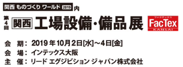 2019年10月2日(水)~4日(金)の期間、インテックス大阪にて開催される 関西ものづくりワールド2019内 【第4回 関西工場設備・備品展】に出展いたします。 工場現場の安全対策用品を幅広くを展示、ご紹介いたします。 是非、弊社展示ブースへご来場ください。 ◆◆◆弊社出展ブース◆◆◆ 3号館 ブースNo. 16-17 ◆◆◆◆◆◆◆◆◆◆◆◆◆ 招待状のご希望がございましたらお送りいたしますので お問い合わせください。